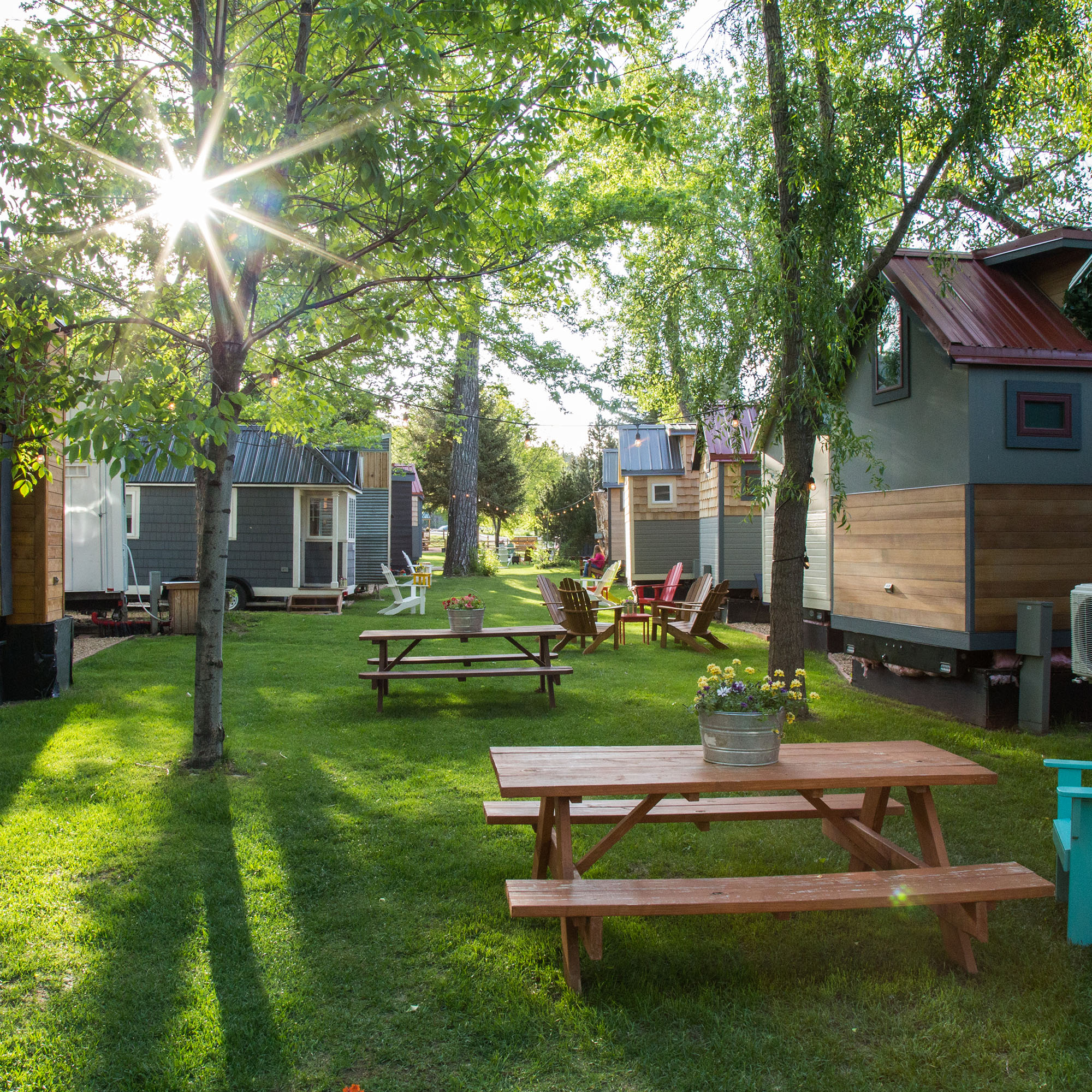 Other amenities not to miss: River front / water access, lawn games, free WIFI, fire pits, BBQ grills, picnic areas, wonderful kids’ play park nearby, grocery market and ice cream shops within walking distance, walkable to Planet Bluegrass, star gazing, local distillery & brewery, live music: concert series/ festivals, art strolls, learning about the Tiny Lifestyle, fantastic hiking/ biking trails, tubing, kayaking, fly fishing and many other adventures. Distances: Estes Park: 20 miles Denver Int’l Airport: 55 miles Denver: 50 miles Boulder: 17 miles