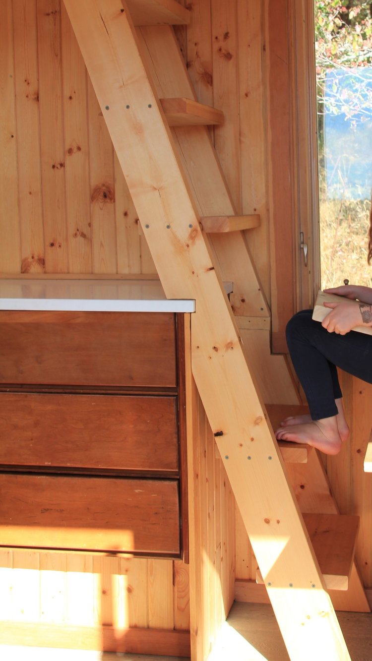 The 8 x 7 feet loft is quite commodious and can sleep up to two people comfortably. There is enough room to accommodate a king size mattress to let the occupants make the maximum use of the available space and sleep conveniently. There is also ample headroom which allows the residents to spend some leisure time lounging in the comfort of their personal space without going through the hassle of feeling confined in a small room.