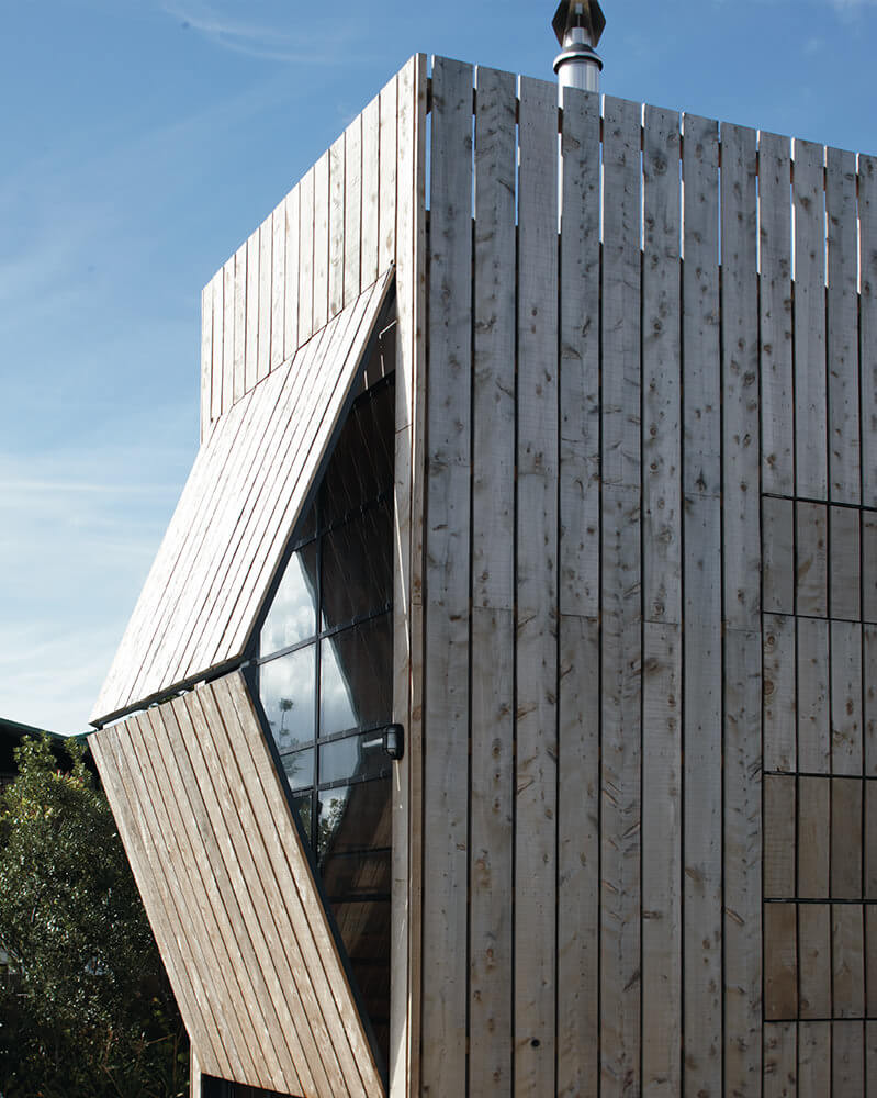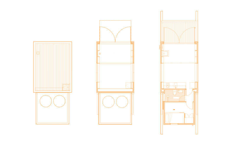 The site where this home was built specifically for is located within a coastal erosion zone where all buildings must be removable—so the hut is designed on two thick wooden sleds for movement back inland or across the beach and onto a barge. At just 130 square feet, it's designed to close up against the elements when not in use or during transport.